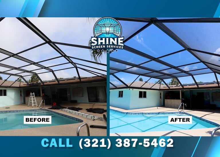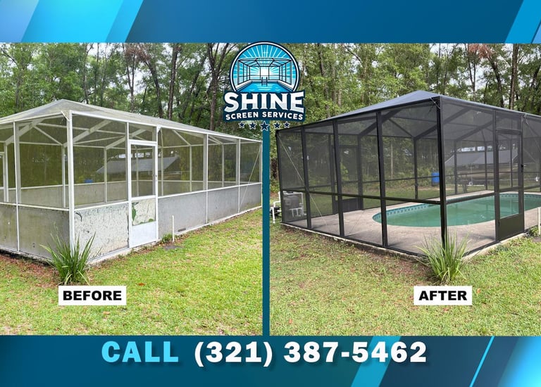 When your screen enclosure is beyond patching, it’s time for a Full Rescreen! Shine Screen Services removes every old panel and installs brand-new, high-quality screens that restore your patio’s look, strength, and protection.
